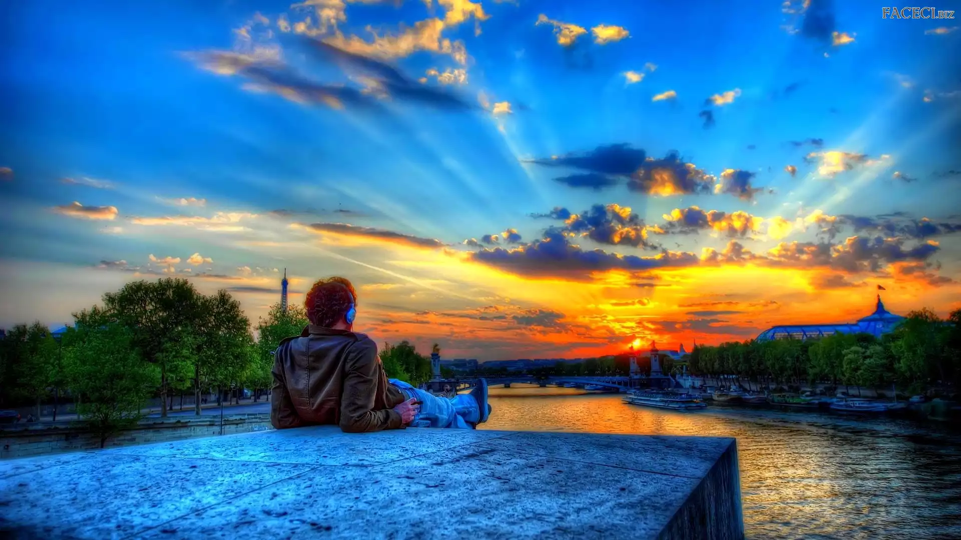 Rzeka, Francja, Mężczyzna, Słońca, Paryż, Zachód - faceci.biz