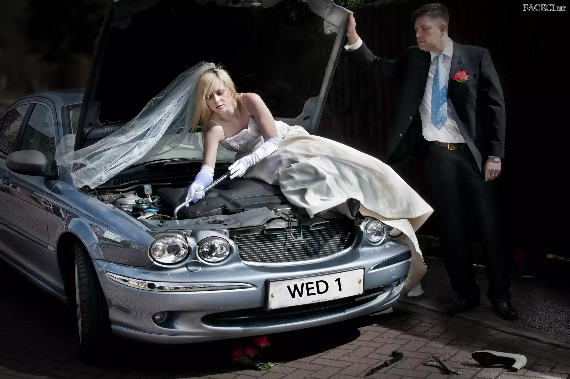 Samochód, Zepsuty, Para, Ślub, Młoda - faceci.biz
